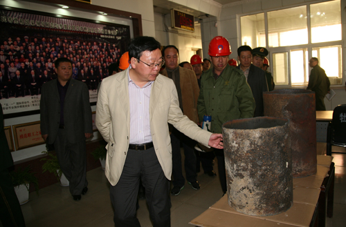 在公司孫玉慶董事長及全體班子成員的陪同下,崔市長一行踏查了生產(chǎn)現(xiàn)場。孟慶華總經(jīng)理就公司的安全工作以及目前的生產(chǎn)、經(jīng)營情況向崔市長等領(lǐng)導做了匯報。