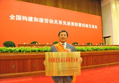 “全國構(gòu)建和諧勞動關(guān)系先進(jìn)表彰暨經(jīng)驗交流會”于2011年8月15日至16日在北京隆重舉行。中共中央政治局常委、中央書記處書記、國家副主席習(xí)近平出席會議并講話。這次會議,是由全國總工會、人力資源和社會保障部、全國工商聯(lián)、中國企業(yè)聯(lián)合會、中央宣傳部聯(lián)合召開的。會議表彰了全國模范勞動關(guān)系和諧企業(yè)和工業(yè)園區(qū),我公司獲得“全國模范勞動關(guān)系和諧企業(yè)”榮譽(yù)。