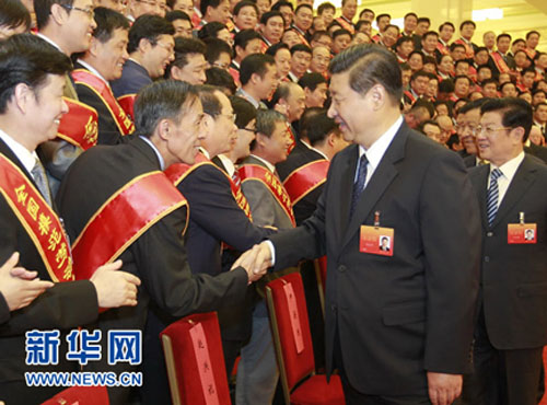 習(xí)近平、王兆國等黨和國家領(lǐng)導(dǎo)人親切接見與會代表(左起第五位是孫玉慶董事長)